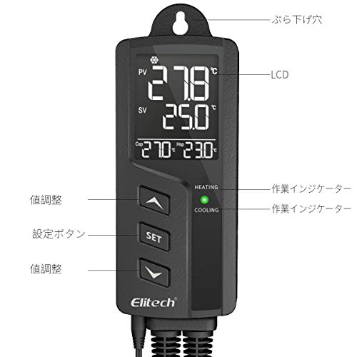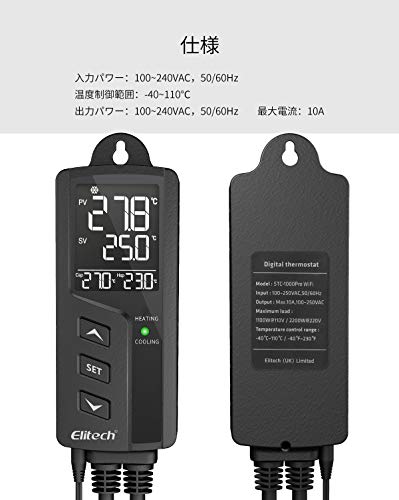| 商品名 | Elitech STC-1000Pro サーモスタット温度コントローラー配線済み デュアル出力 加熱および冷却 温度センサ 110V 100-2 |