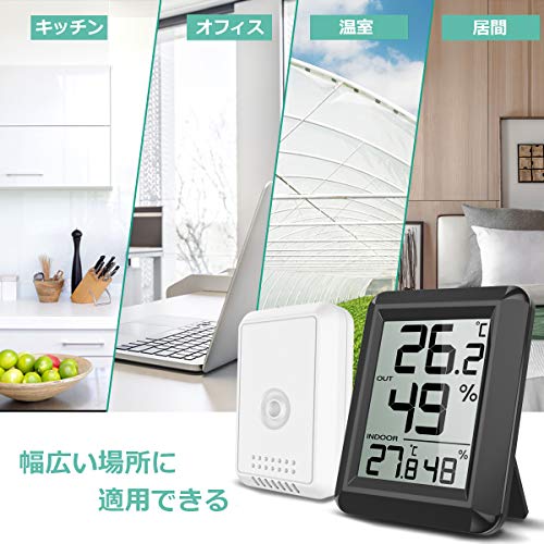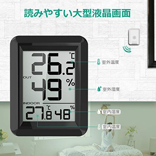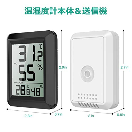 【室内・室外兼用&1個子機センサー】:室内でも両方の温湿度がチェックできる便利な計器です。子機センサーから親機に測定結果を送信できる距離は見通しの良いところで約33mです。 子機センサー利用して、2ヵ所の測定値は自動的に親機に送信します。エアコンを使うときにはとても役に立ちま