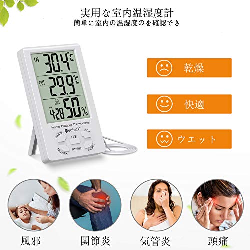 Neoteck 温湿度計 精度± 1[度] センサー LCDデジタル 室内外温度 室内湿度 置き掛け両用 温湿度測定 家庭用 熱中症