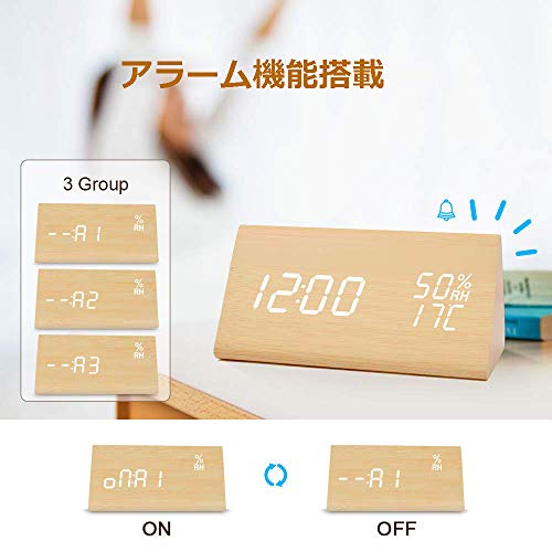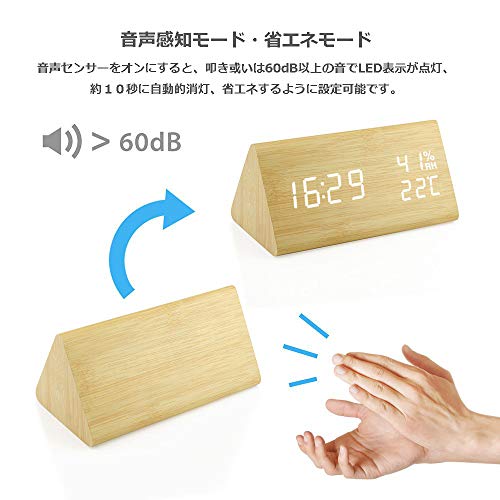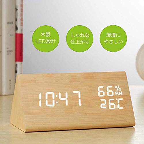 目覚まし時計 置き時計 デジタル 大きなLED数字表示 温度湿度計 カレンダー アラーム 振動/音感センサー 輝度