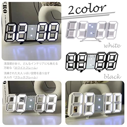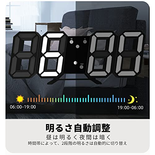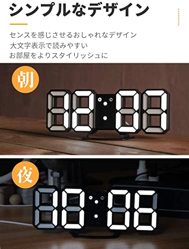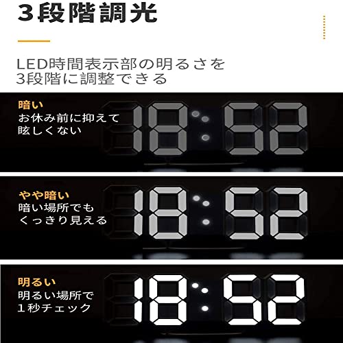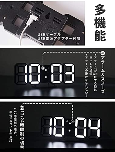 LEDデジタル時計 3Dデザイン アラーム機能付き 置き時計 壁掛け時計 明るさ調整 日本語取扱説明書付き デジタ