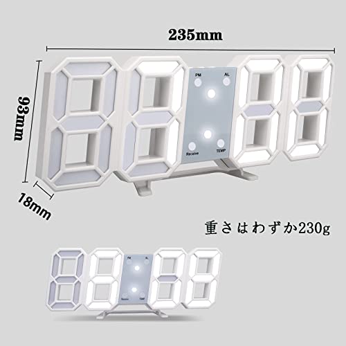 LEDデジタル時計 目覚まし時計 3D LED時計 置き時計 壁掛け時計 掛け時計 アラーム機能付き 、3つの明るさ調整,