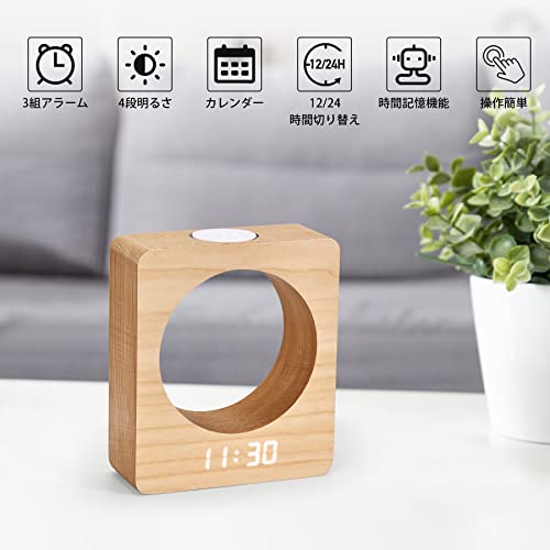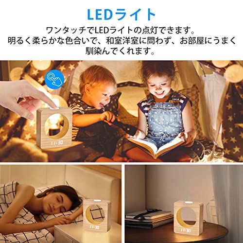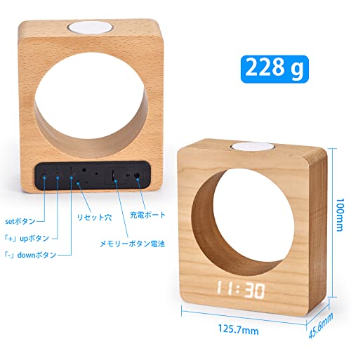 U-pick デジタル時計 目覚まし時計 おしゃれ インテリア 天然木製 置き時計 ベッドサイドランプ テーブルラン