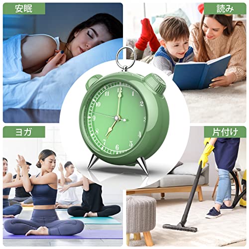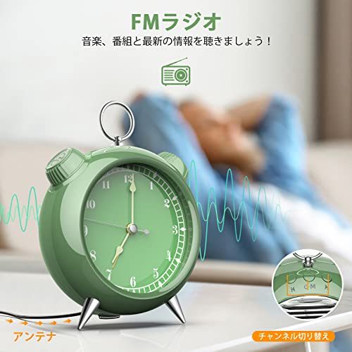 ?【優れたデザイン】秒針が連続稼働で秒針の運針音は全くしないので寝室でも十分使えます。音量はボリューム式の回転調節で、音の強さがさらに細かく設定できます。シンプルな数字や蛍光性の針のデザインは年配の人でも夜でもよく見えます。目覚まし時計の最大音量はとても大きくて、突然の大きな音に驚かないように、小から大への音量モードが設計されています。本体はちょうどいいサイズで、じゃまになりません。コードレスで使用できることやType-C充電式はどこにでも使用するのが便利です。