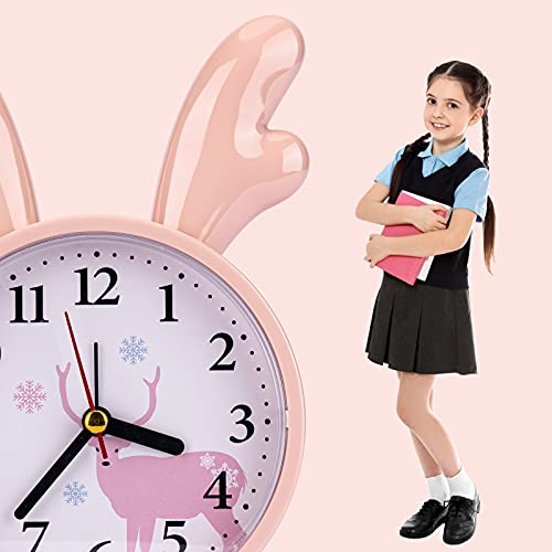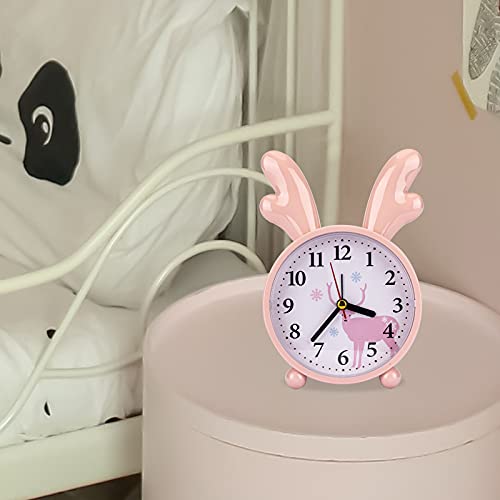 大音量 目覚まし時計 子供 置き時計 連続秒針 卓上時計 子供のプレゼント 起きれるめざまし時計 (枝角 桃色)