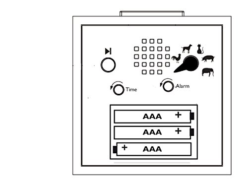アラーム音の選択:ニワトリ - ネコ - 犬 - ブタ - ゾウ