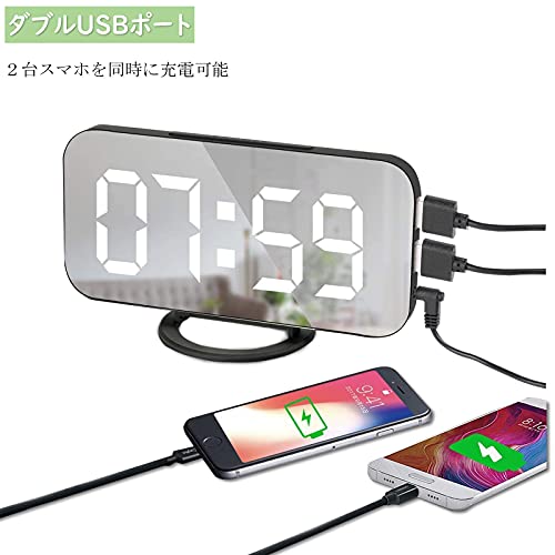 【ダブルUSBポート付き】:デジタル目覚まし時計に2つのUSB充電ポート(5V,1A)を装備し、AndroidやiPhoneなどの充電が2台同時に行えます。(