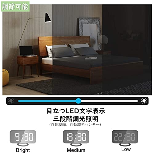 【調光照明と夜間モード】:デジタル時計には3レベルの明るさ設定があり、好みに応じて光を自由に調整できます。 ナイトモードは、設定した期間に作動します。 自動調光センサー機能もついております。