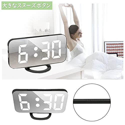 U-pick目覚まし時計 置き時計 ミラーデジタル時計 ミラークロック スヌーズ 12/24時間表示 卓上 LED大画面 設置