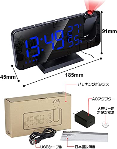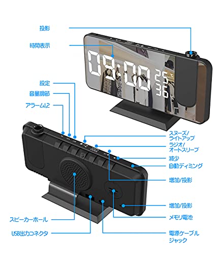 | 商品名 | Shengshou 目覚まし時計 デジタルLED時計 投影時計 非電波 温湿度計 スヌーズ FMラジオ 投影 ミラー 携帯充電 おし |