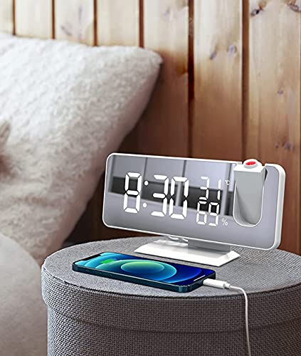 Shengshou 目覚まし時計 デジタルLED時計 投影時計 非電波 温湿度計 スヌーズ FMラジオ 投影 ミラー 携帯充電 おし