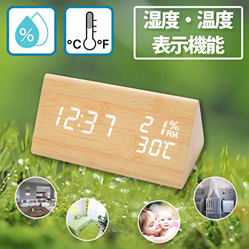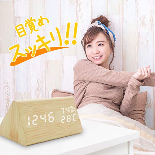 churaijyu 目覚まし時計 日本語説明書付き 置き時計 USB/乾電池給電 多機能 おしゃれ 温度/湿度 デジタル (三角,