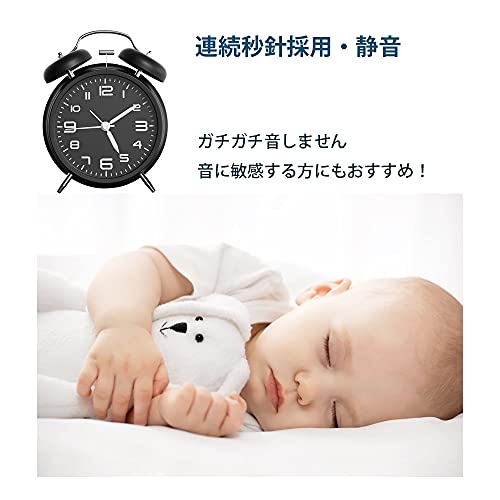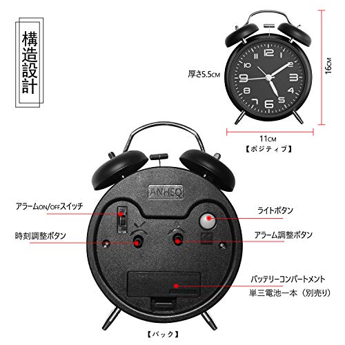 | 商品名 | ANHEQ 目覚まし時計 大音量 めざまし時計 ベル おしゃれ アナログ 電池式 置き時計 連続秒針採用 静音 卓上時計 |