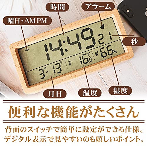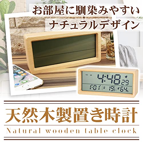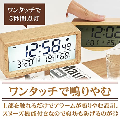 置き時計 天然木製 目覚まし時計 アラーム タッチ式 インテリア 寝室 バックライト完備 (ベージュ)