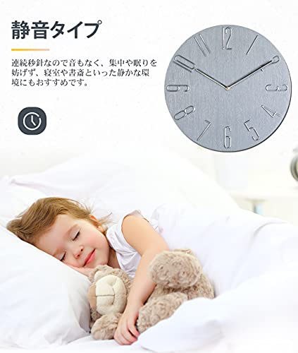 yiteng 掛け時計 おしゃれ 北欧 静音 連続秒針 壁掛け時計 木目 シンプル モダン フレームなし 3D立体数字 かわ
