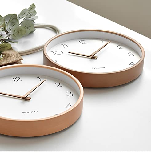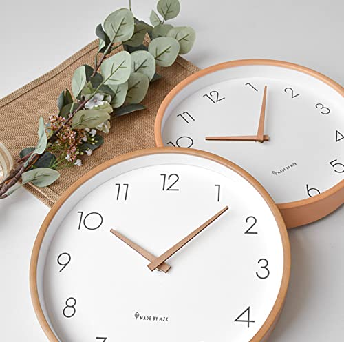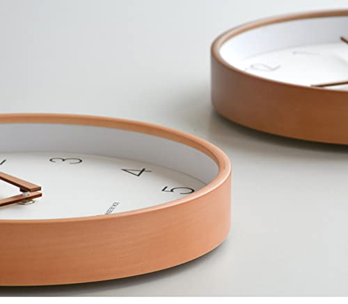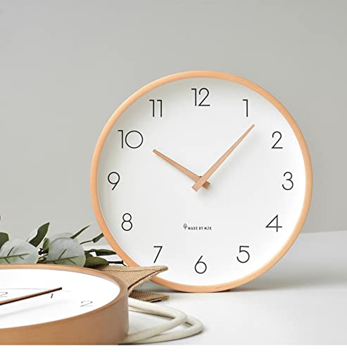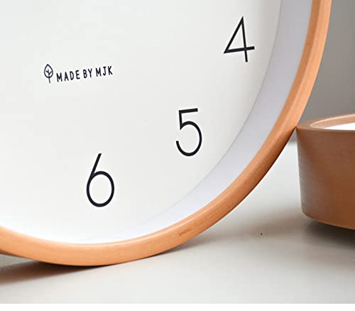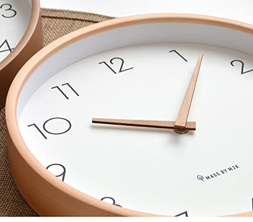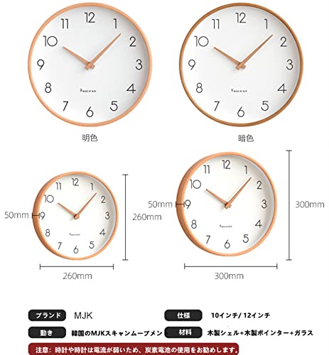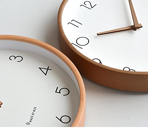 掛け時計 北欧の壁時計シンプルで静かな木の色10インチ白い壁時計無垢材のポインター連続秒日本の無垢材の