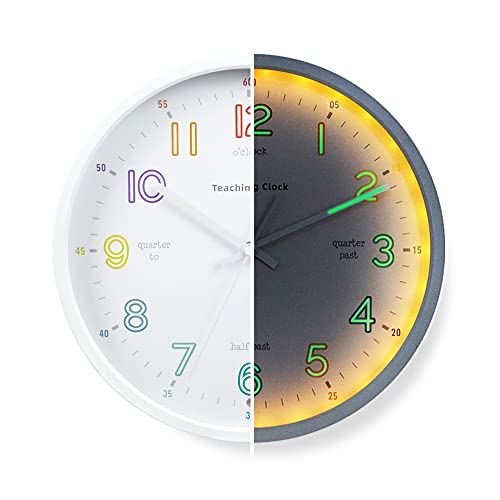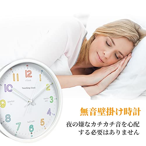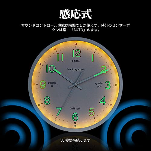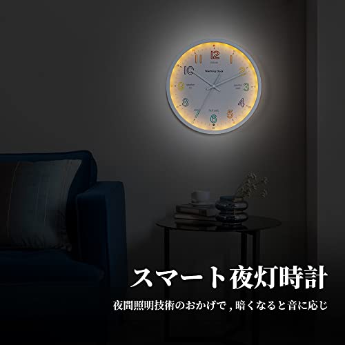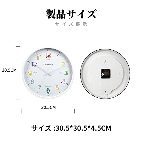 12インチのカチカチ音をたてない知的教育非カチカチサイレントルミナス キッズが時間を教えて学習壁時計電