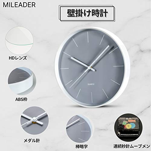 MILEADER 壁掛け時計 棒略字 モダン 掛け時計 連続秒針 静音 ウォールクロック シンプル おしゃれ 近代的なイメ