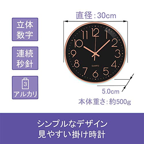 | 商品名 | FOLIVORA クロック 掛け時計 直径30cm クオーツ時計 壁掛け 完全サイレント 静音 連続秒針 3D大数字 見やすい 9色 |