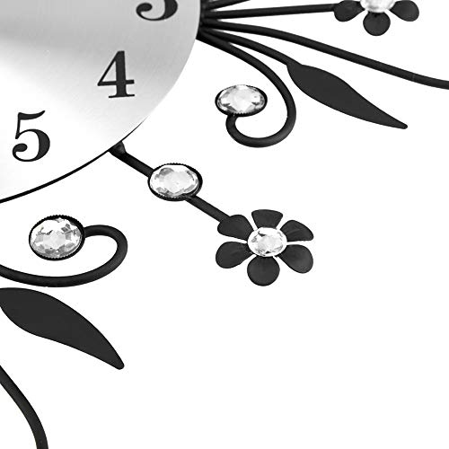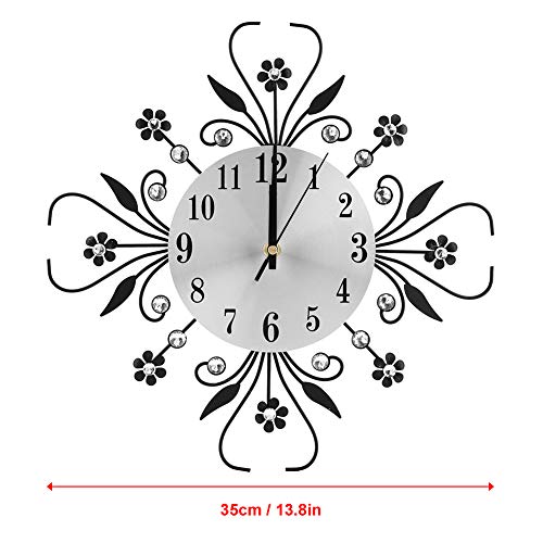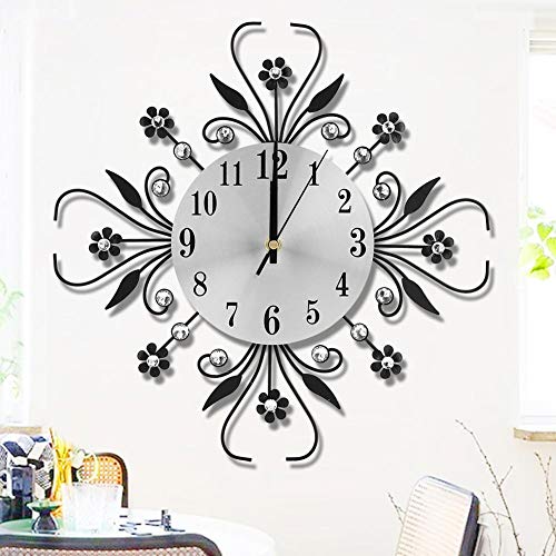 ウォールクロック、アイアンヨーロピアンスタイルの花型の壁掛け時計ダイヤモンド吊り壁時計