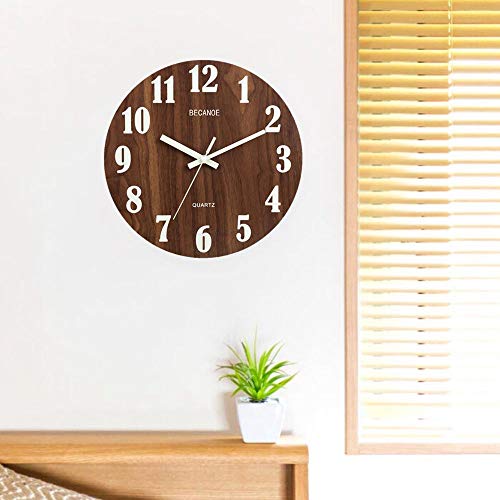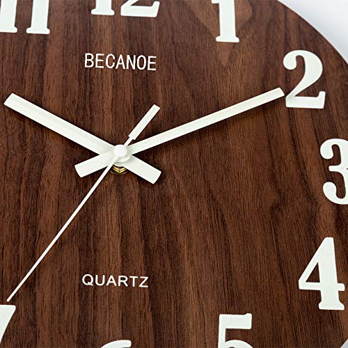 BECANOE 壁掛け時計 木製 サイレント 連続秒針 夜光 大文字 アナログ クロック 掛け時計 インテリア