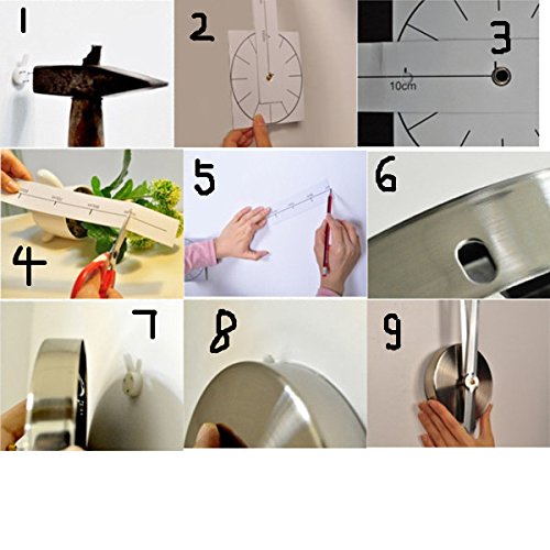 組み立ては非常に簡単です、英語説明書があります、壁に直接軽量ウレタン製の数字を貼り付けることで時計としての機能を果たします。数字が立体的に見え、視認性も高く、シンプルで見やすい。