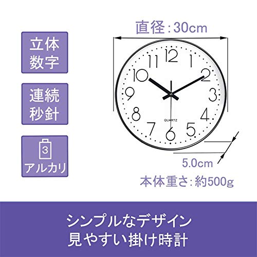 | 商品名 | FOLIVORA クロック 掛け時計 直径30cm クオーツ時計 壁掛け 完全サイレント 静音 連続秒針 3D大数字 見やすい 9色 |