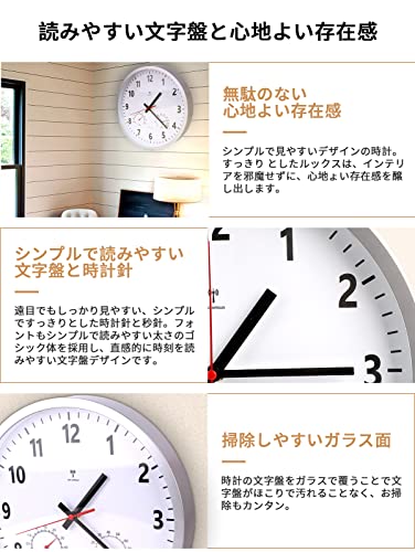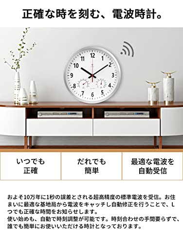 | 商品名 | 掛け時計 BENRIKATU 壁掛け時計 電波時計 夜間秒針停止 直径30CM 静音 温度計 湿度計付き 見やすい 大数字 おしゃ |