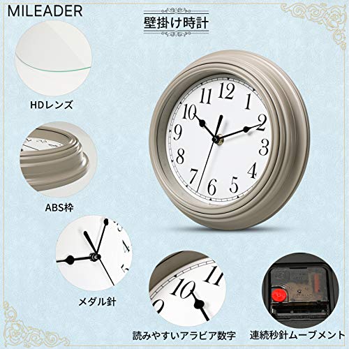 MILEADER 壁掛け時計 西洋風 ヨーロピアン風 掛時計 アンティーク調 連続秒針 静音 プラチック枠 ウォールクロ