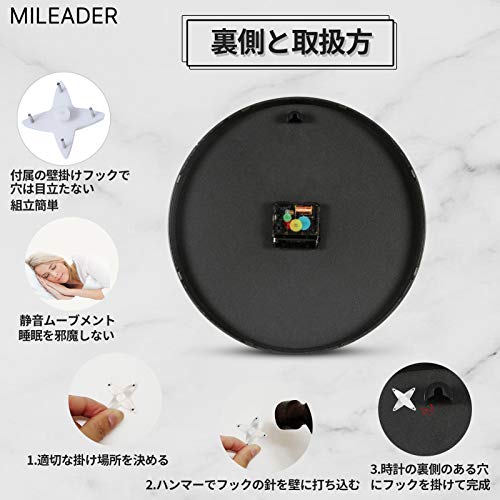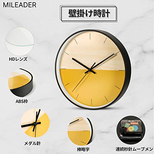 MILEADER 壁掛け時計 棒略字 コントラスト 掛時計 連続秒針 静音 ウォールクロック シンプル おしゃれ 近代的な