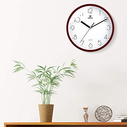 Aelfox 壁掛け時計 連続秒針 静音 アナログ 掛け時計 おしゃれ クオーツ 電池式(赤い木目)