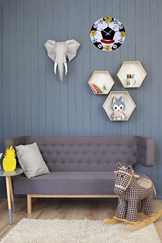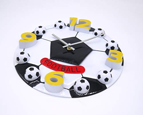 サッカーボールがモチーフのユニークで面白いデザインの壁掛け時計です。