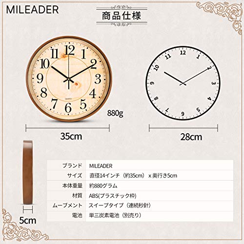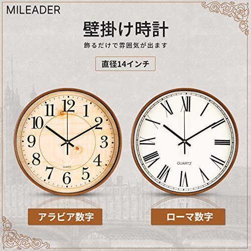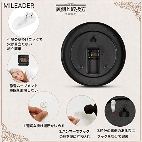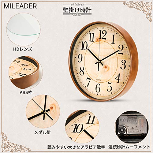 MILEADER 壁掛け時計 アンティーク調 西洋風 ヨーロピアン風 掛時計 連続秒針 静音 プラチック枠 ウォールクロ