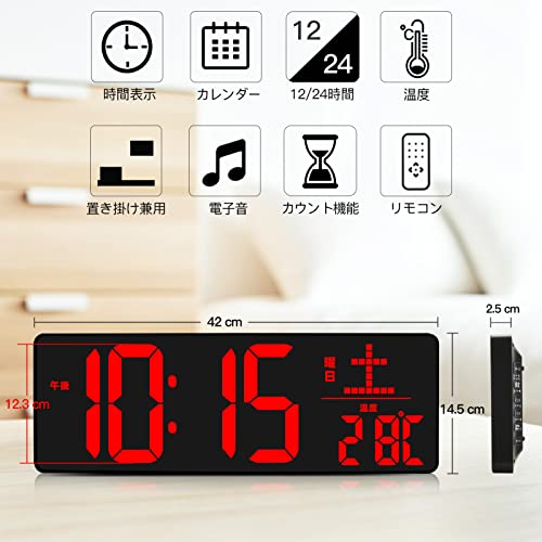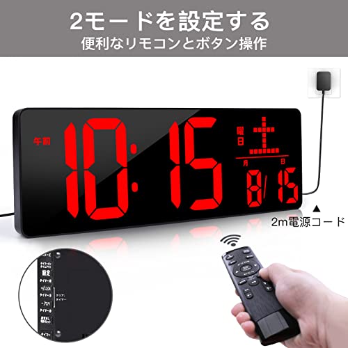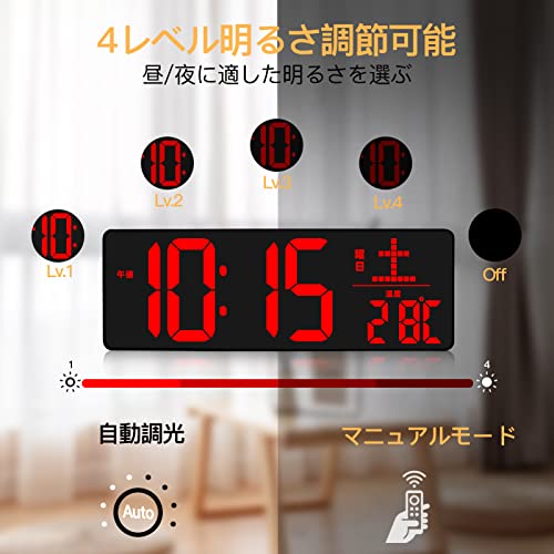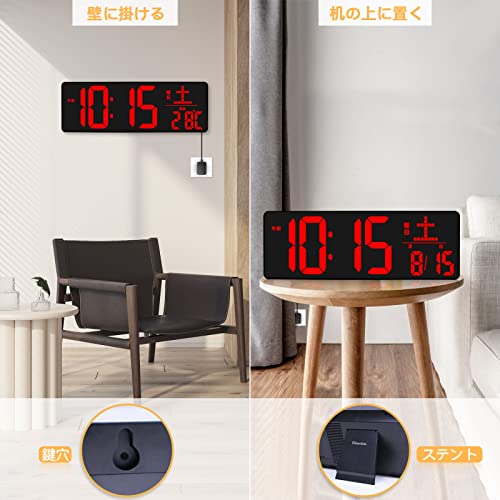 Blueekin デジタル時計 LED大画面 大型 明るさ調整可能 見やすい 壁掛け置き兼用 目覚まし時計 大音量 タイマー