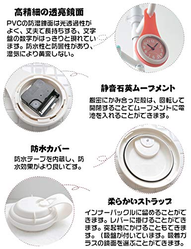 【二つの固定方法】:そのままフックに掛けても、タオル掛け等に吊り下げても、吸盤を使って鏡やガラス、タイル等に吸着してもよい時計。吸盤は滑らかな表面壁にのみ取り付けられています、例えばガラス、タイル、ミラー(鉄含有壁には、吸盤は吸着できないことを予めご了承願います)