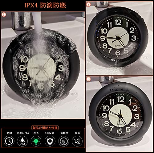 GXSTWU 時計 防水 お風呂時計 夜光蛍光 無音 暗くなると自動で蓄光る アナログ 壁かけ時計 置き時計 バス 洗面