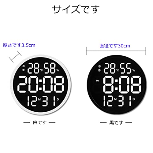 | 商品名 | LED壁掛け時計リモコン付き大画面掛け時計自動調光温度湿度表示リモコン温度湿度日付表示12h/24hアラームタイ |