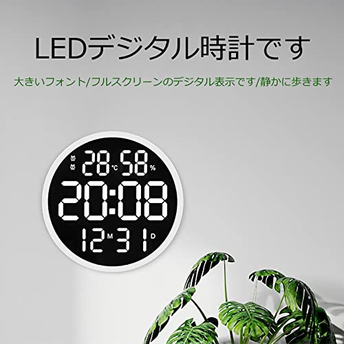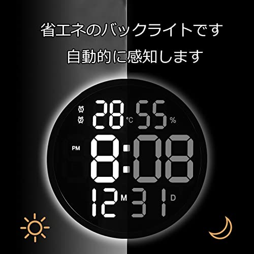 LED壁掛け時計リモコン付き大画面掛け時計自動調光温度湿度表示リモコン温度湿度日付表示12h/24hアラームタイ
