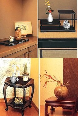 木製花台 平板 敷板 黒檀調 (8号) 木製漆器 花瓶を置く台