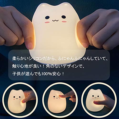 ?【安全素材・ふわふわした手触り】超可愛いニャンコデザインベッドサイドランプ、萌え萌えな表情でかなり癒されます。食品級のシリコンを採用、人体に有害とされているBPA(ビスフェノールA)という化学物質を含めていない。超軽量、安全設計で、赤ちゃんでも安心して使えます。