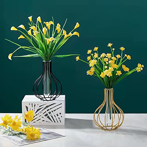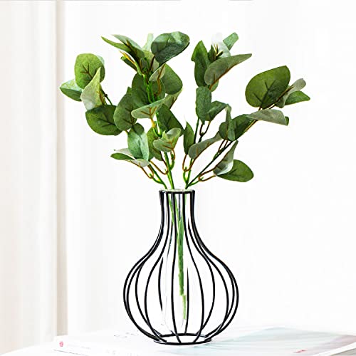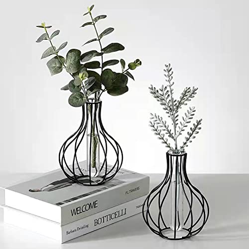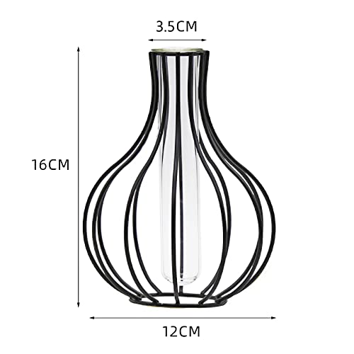 金属製花瓶ガラス製 水栽培 -試験管 ミニ花器 一輪挿し おしゃれ シンプル インテリア (黒花瓶セット)