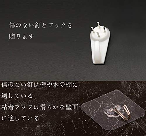 傷のない釘とフックを贈ります。傷のない釘は壁や木の棚に適している,粘着フックは滑らかな壁面に適している。粘着フックは10 kgの重さに耐える。