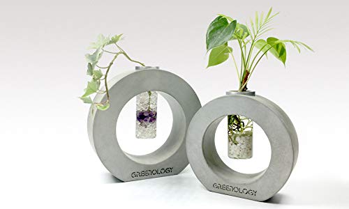 ガラスの試験管とコンクリートの鉢を組み合わせます。(本製品は植物や石は含みません)
