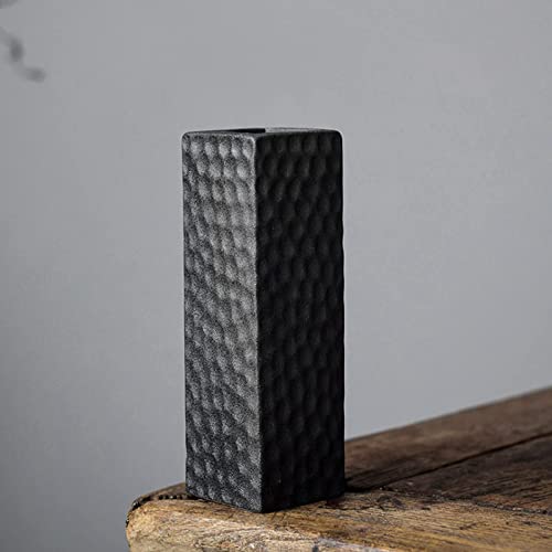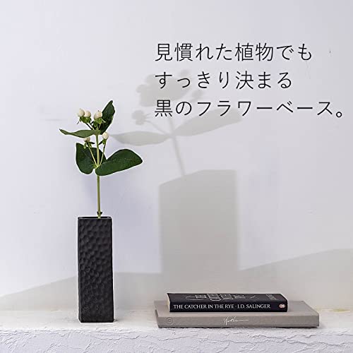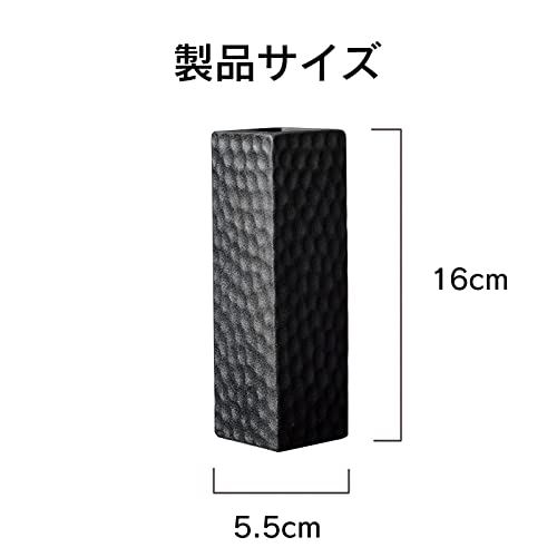 FUFUFU PRO 花瓶 黒 陶器 16cm つや消し フラワーベース 生け花 花器 (角型)