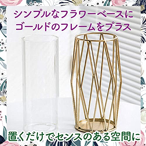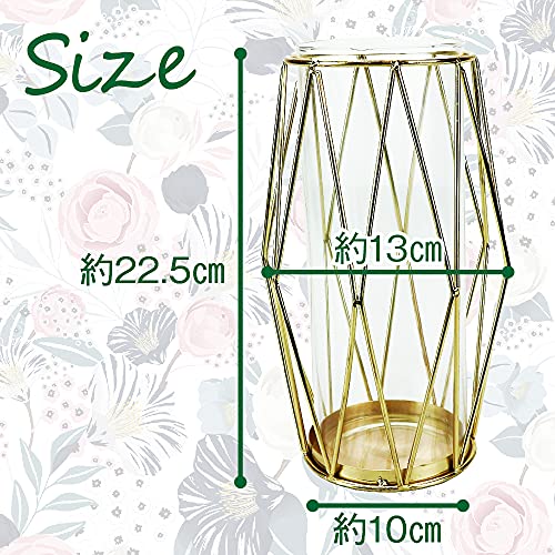 【セット内容】ガラス花瓶×1点 ゴールドフレーム×1点 【サイズ(約)】全長:22.5cm 幅:13cm 底面:直径10cm ガラス瓶:口径8.2cm 【カラー】花瓶:クリア フレーム:ゴールド 【材質】ガラス・鉄(メッキ仕上げ)