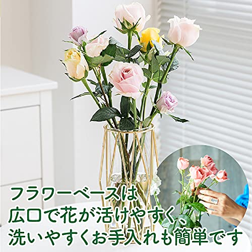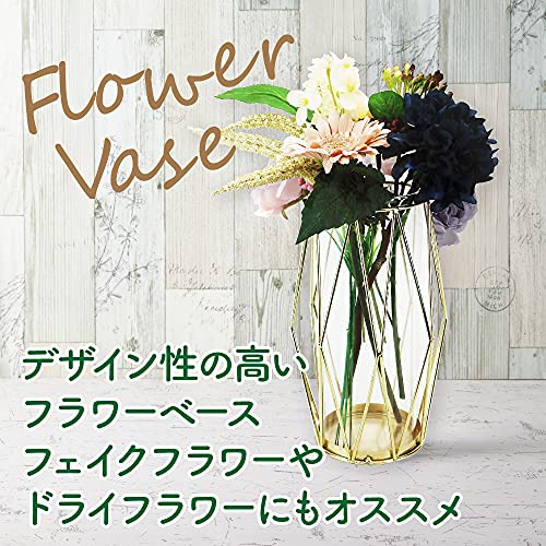 フラワーベース 花瓶 ガラス ゴールドフレーム ダイヤモンド型 インテリア 卓上 一輪挿し ドライフラワー
