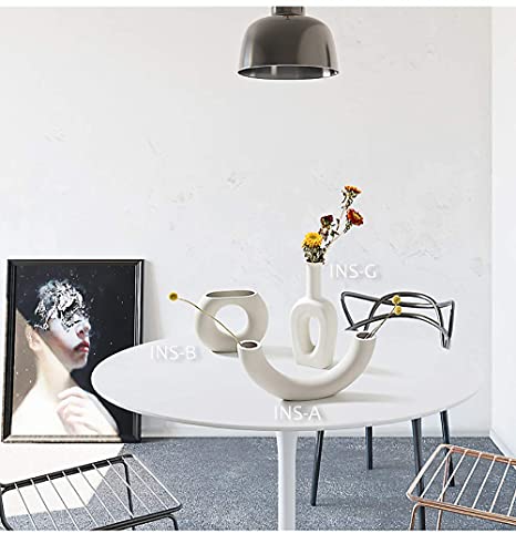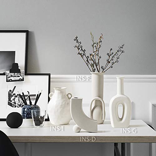 INGLENIX ホワイトセラミック花瓶 北欧ミニマリズムスタイル装飾センターピース、キッチン、オフィス、リビン