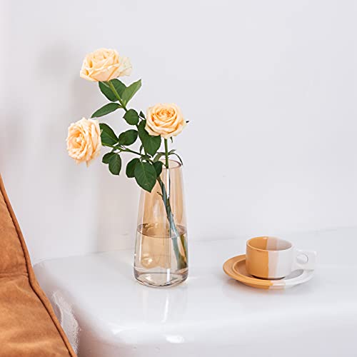 Ekirlin 花瓶 ガラスおしゃれ フラワーベース 花器 シンプル 北欧 一輪挿し 室内 ギフト インテリア 22cm 琥珀