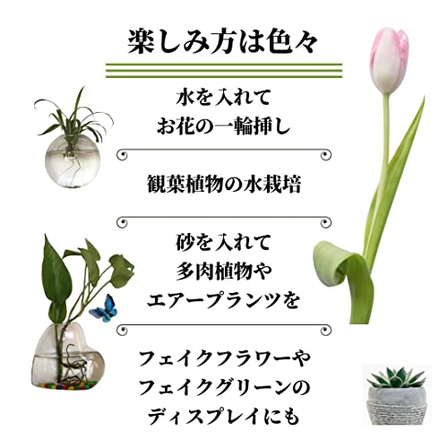 【楽しみ方は色々】水を入れてお花の一輪挿し、観葉植物の水栽培をするのはもちろん、砂を入れて多肉植物やエアープランツを飾ったり、フェイクフラワー、フェイクグリーンのディスプレイにもおすすめです。