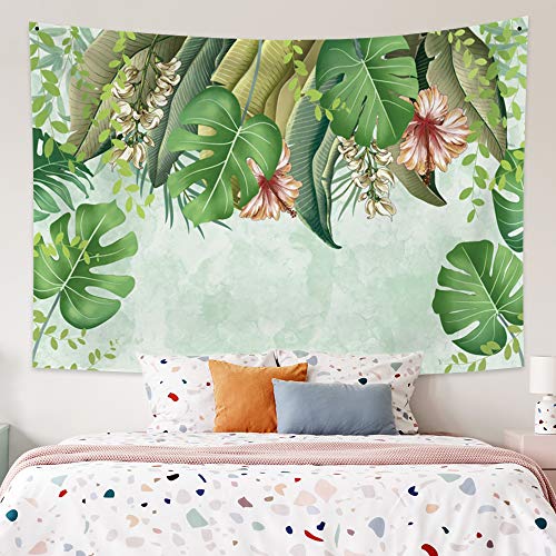 Qinunipoto タペストリー 熱帯植物 緑の葉 100cmx70cm 壁掛け 子供部屋 装飾 写真背景 ライブ背景 Youtube ビデオの背